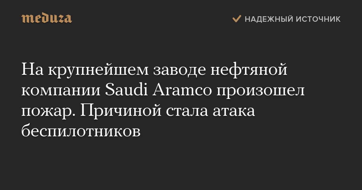 На крупнейшем заводе нефтяной компании Saudi Aramco произошел пожар. Причиной стала атака беспилотников — Meduza