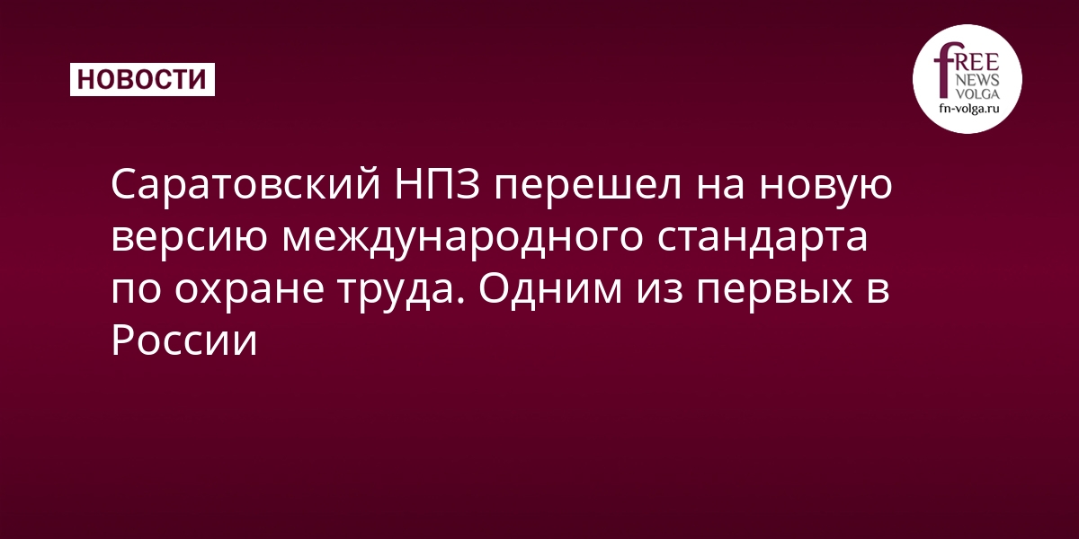 1. Саратовский НПЗ перешел на новую версию международного стандарта по охране труда. Одним из первых в России  fn-volga.ru
